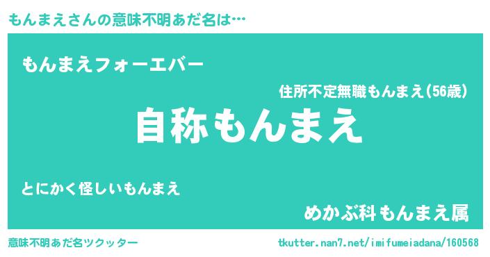 | 男性向けラノベタイトル風あだ名 | 『Re:もんまえから始める異世界生活』 |