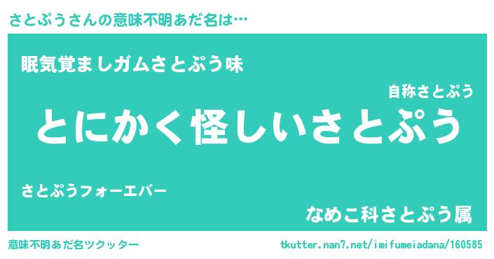| 女子向けラノベタイトル風あだ名 | 『さとぷうの卵を拾いまして』 |