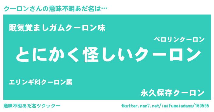 | 男性向けラノベタイトル風あだ名 | 『ダンジョンにクーロンを求めるのは間違っているだろうか』 |