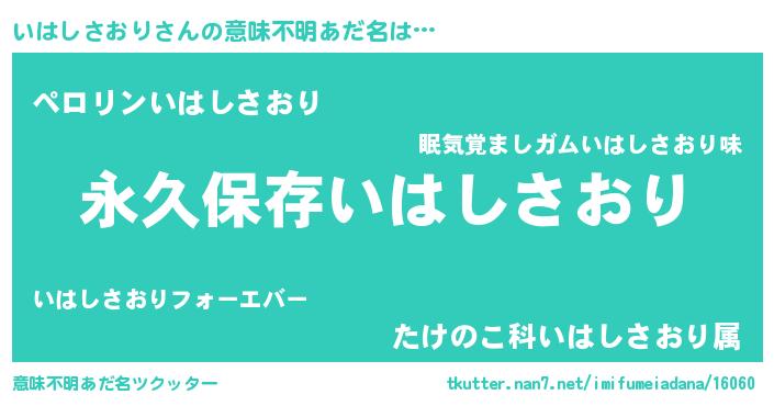 | 胡散臭い通販商品みたいなあだ名 | 『来世でも幸せになれる健康食品…その名も「いはしさおり」』 |