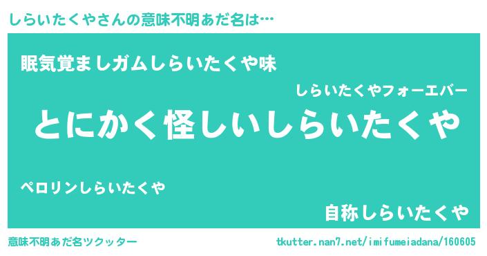 | 料理風あだ名 | 『しらいたくやの豆乳スープ』 |
