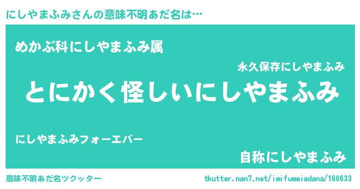 | 胡散臭い通販商品みたいなあだ名 | 『伝統あるサプリメント…その名も「にしやまふみ」』 |