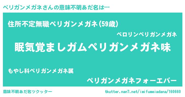 | 料理風あだ名 | 『ペリガンメガネのトマト煮』 |