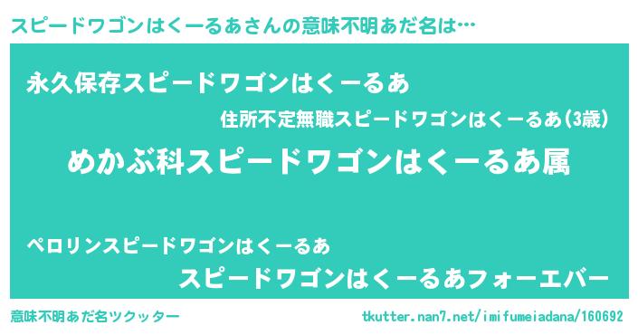 | 欧米人風あだ名 | 『トリンドルスピードワゴンはくーるあ』 |