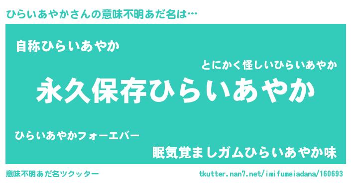 | 胡散臭い通販商品みたいなあだ名 | 『来世でも幸せになれる健康食品…その名も「ひらいあやか」』 |