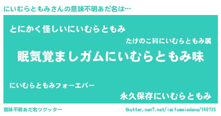 | ポケモン風あだ名 | 『ニックウザ』『ヒニイムラトモミ』 |