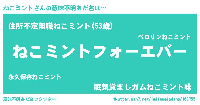 | 欧米人風あだ名 | 『ねこミントクリステル』 |