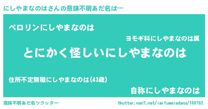 | ポケモン風あだ名 | 『ヒニシヤマナノハ』『ニシチュウ』 |