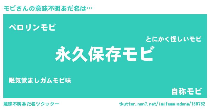 | 男性向けラノベタイトル風あだ名 | 『モビという概念が存在しない退屈な世界 』 |
