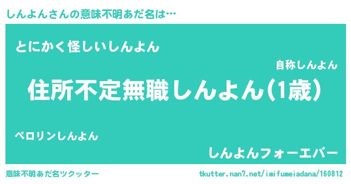 | 男性向けラノベタイトル風あだ名 | 『魔弾の王としんよん』 |