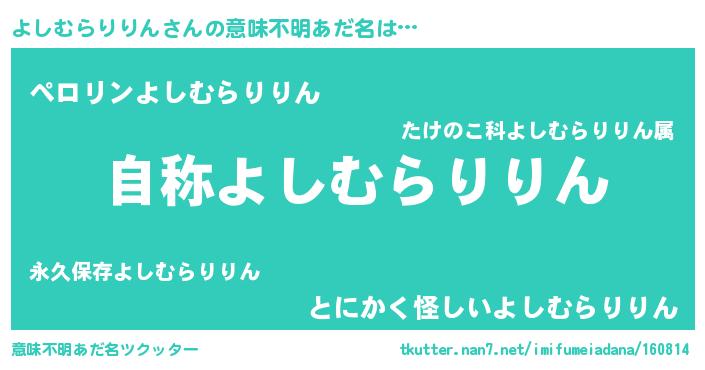 | 男性向けラノベタイトル風あだ名 | 『Re:よしむらりりんから始める異世界生活』 |