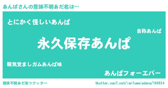 | 胡散臭い通販商品みたいなあだ名 | 『来世でも幸せになれる健康食品…その名も「あんぱ」』 |
