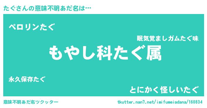 | ヘコむあだ名 | 『たぐにー』『たぐっ子』『豆乳』 |