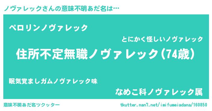 | 男性向けラノベタイトル風あだ名 | 『この素晴らしい世界にノヴァレックを!』 |