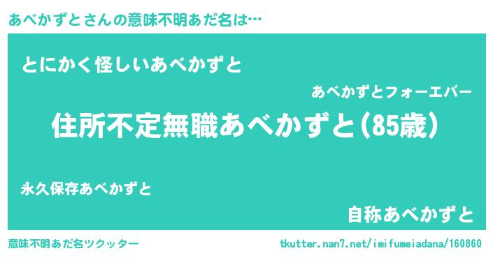 | 胡散臭い通販商品みたいなあだ名 | 『あなたにだけ特別に提供する世界で10本だけ現存している希少なブランデー…その名も「あべかずと」』 |