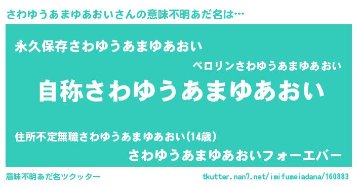 | 男性向けラノベタイトル風あだ名 | 『Re:さわゆうあまゆあおいから始める異世界生活』 |
