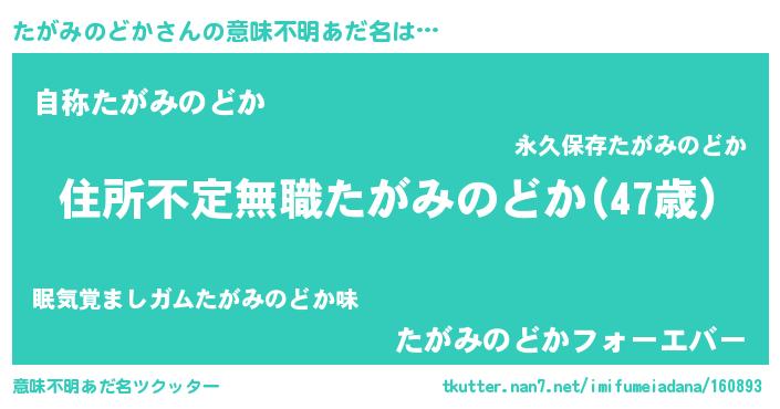 | 男性向けラノベタイトル風あだ名 | 『うちのたがみのどかが世界を掌握している!』 |