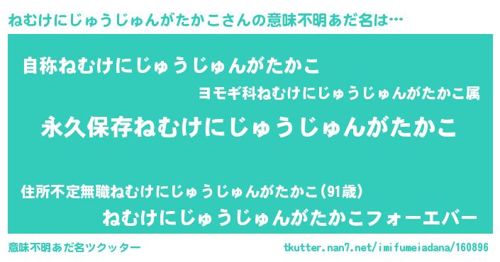 | 胡散臭い通販商品みたいなあだ名 | 『来世でも幸せになれる水素水…その名も「ねむけにじゅうじゅんがたかこ」』 |