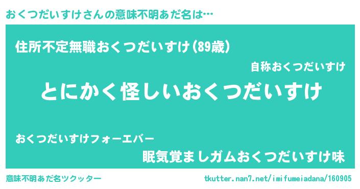 | 女子向けラノベタイトル風あだ名 | 『おくつだいすけは平凡を望む』 |