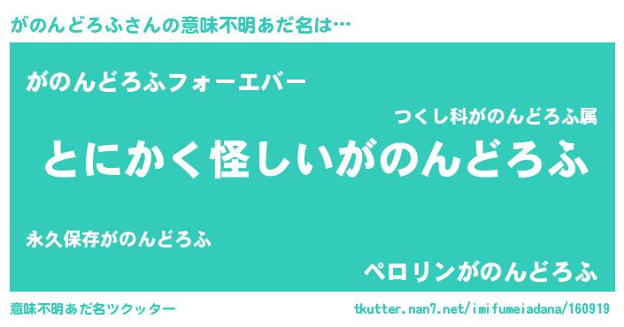 | 女子向けラノベタイトル風あだ名 | 『がのんどろふの卵を拾いまして』 |