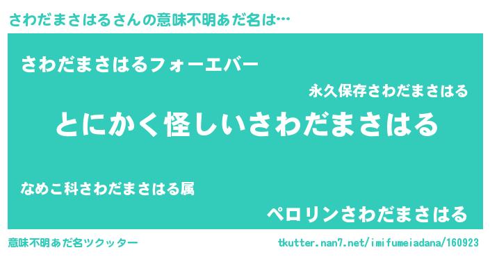 | ポケモン風あだ名 | 『ヒサワダマサハル』『サワダダネ』 |