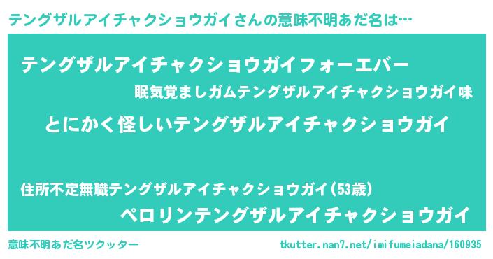 | 欧米人風あだ名 | 『ウサインテングザルアイチャクショウガイ』 |