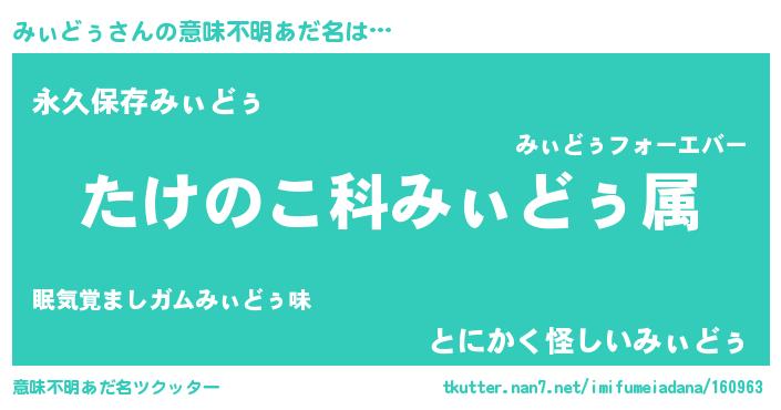 | ヘコむあだ名 | 『みぃどぅ(笑)』『みぃっ子』『豆乳』 |