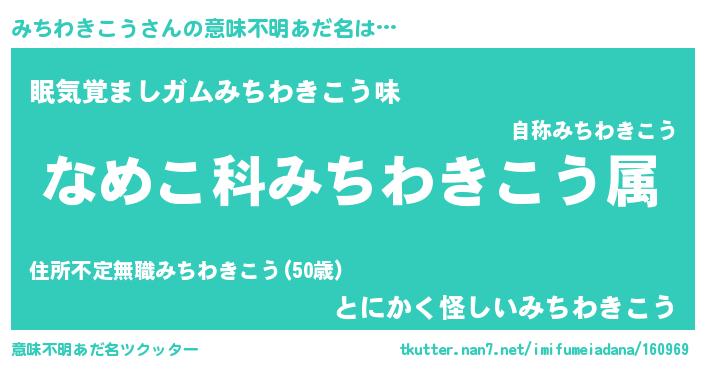 | 男性向けラノベタイトル風あだ名 | 『転生したらみちわきこうだった件』 |