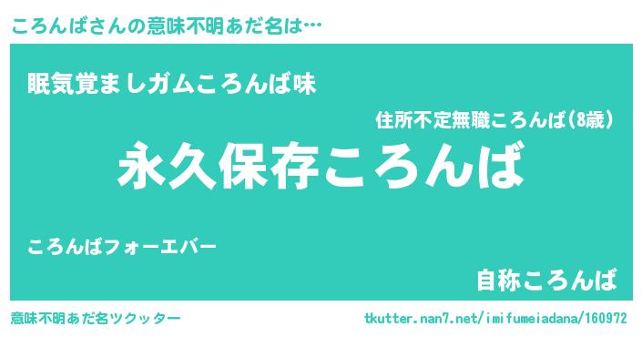 | 男性向けラノベタイトル風あだ名 | 『ころんばという概念が存在しない退屈な世界 』 |