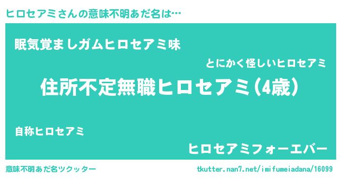 | 男性向けラノベタイトル風あだ名 | 『魔弾の王とヒロセアミ』 |