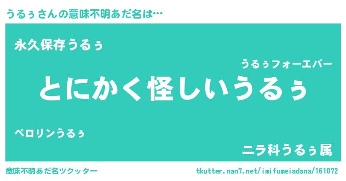 | ヘコむあだ名 | 『うるぷりん』『うるぅ(笑)』 |