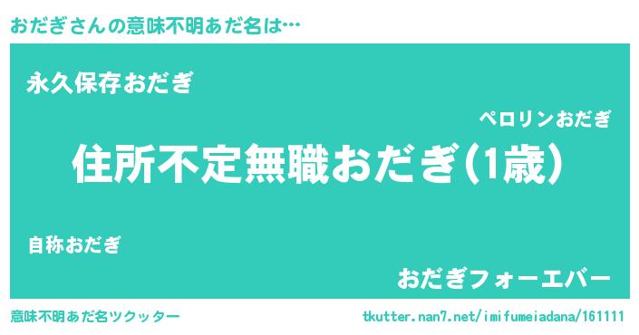 | 男性向けラノベタイトル風あだ名 | 『この素晴らしい世界におだぎを!』 |