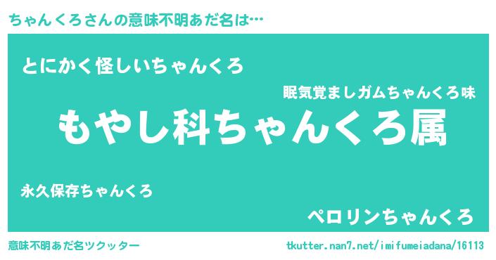 | 男性向けラノベタイトル風あだ名 | 『転生したらちゃんくろだった件』 |