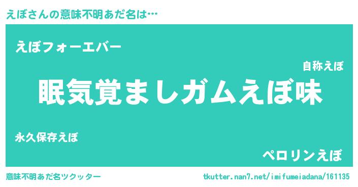 | ヘコむあだ名 | 『豆乳』『えぼもー』『えぼ(苦笑)』 |