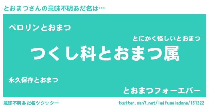 | 胡散臭い通販商品みたいなあだ名 | 『億万長者になれる霊験あらたかなお札…その名も「とおまつ」』 |