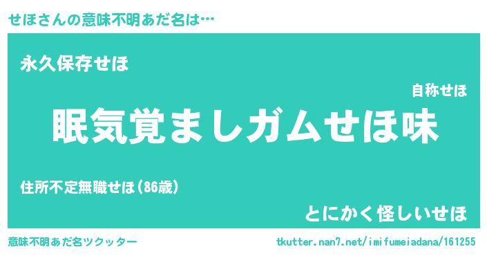 | ヒーロー風カッコイイあだ名 | 『天空の使者せほ』『ネオセホ』 |