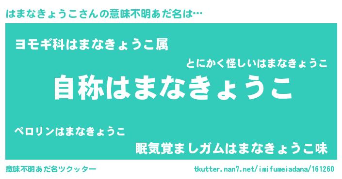 | 胡散臭い通販商品みたいなあだ名 | 『ガンによく効く高麗人参…その名も「はまなきょうこ」』 |