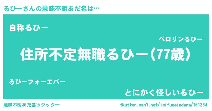 | 胡散臭い通販商品みたいなあだ名 | 『あなたにだけ特別に提供する世界で10本だけ現存している希少なブランデー…その名も「るひー」』 |