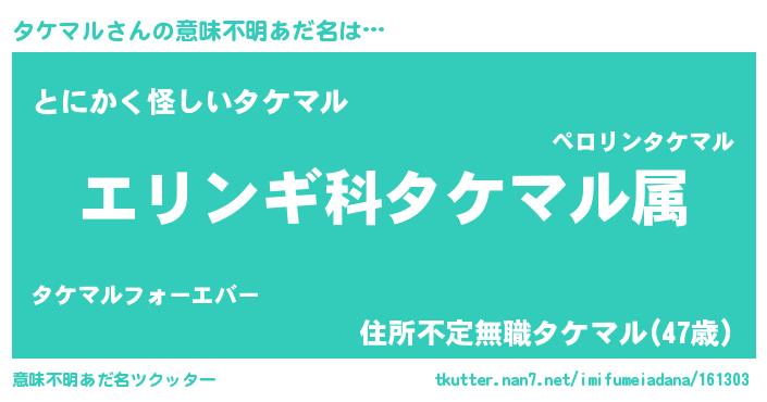 | 胡散臭い通販商品みたいなあだ名 | 『信頼と実績のサプリメント…その名も「タケマル」』 |