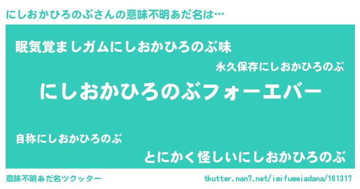 | ファンタジー風あだ名 | 『エターナルニシオカヒロノブー』 |