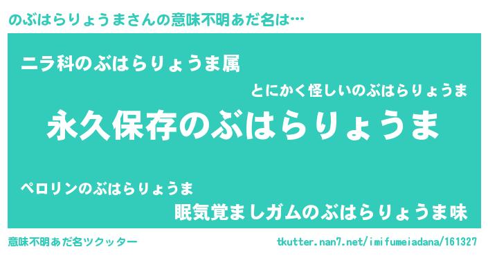 | 伝説のあだ名 | 『聞きしに勝る吟遊詩人のぶはらりょうま』 |