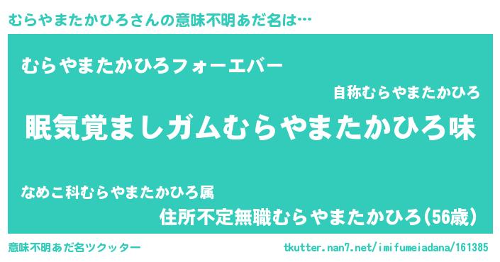 | ポケモン風あだ名 | 『ムックウザ』『ムラヤダネ』 |