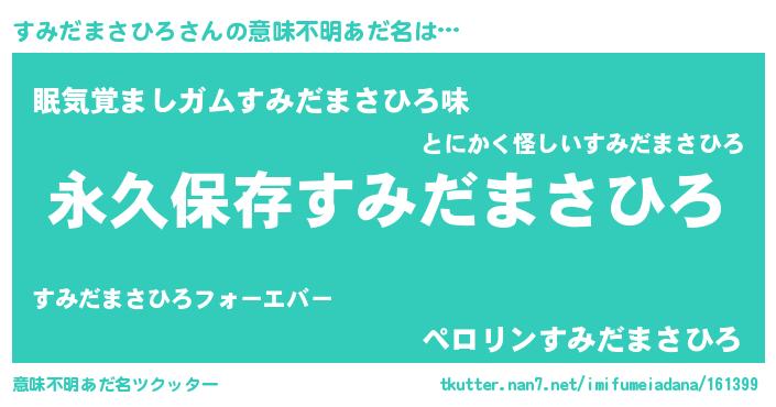 | 胡散臭い通販商品みたいなあだ名 | 『絶対に幸福をもたらす水素水…その名も「すみだまさひろ」』 |