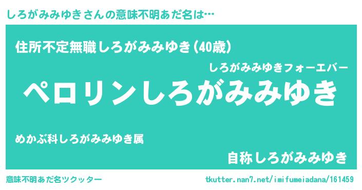 | 胡散臭い通販商品みたいなあだ名 | 『必ず成功するブレスレット…その名も「しろがみみゆき」』 |