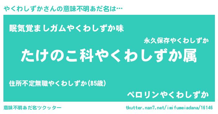 | ヘコむあだ名 | 『やくにー』『やくわしずか(震え声)』 |