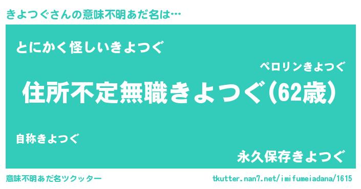 | 男性向けラノベタイトル風あだ名 | 『この素晴らしい世界にきよつぐを!』 |