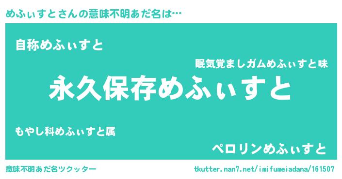 | 胡散臭い通販商品みたいなあだ名 | 『絶対に幸福をもたらす健康食品…その名も「めふぃすと」』 |