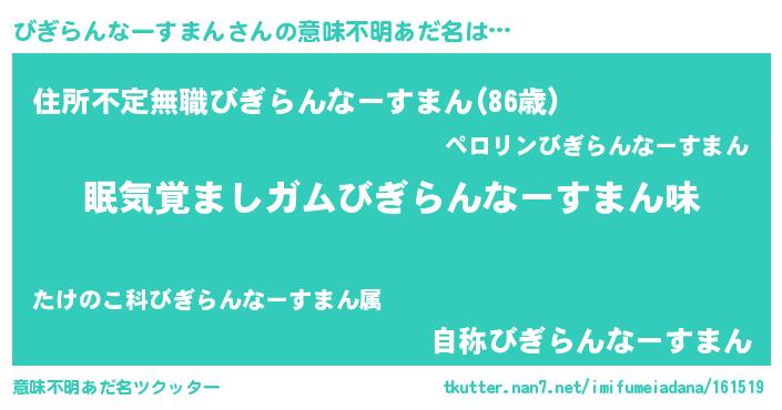| ヒーロー風カッコイイあだ名 | 『正義の使者びぎらんなーすまん』 |