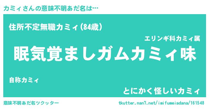 | 料理風あだ名 | 『カミィのトマト煮』『カミィごはん』 |