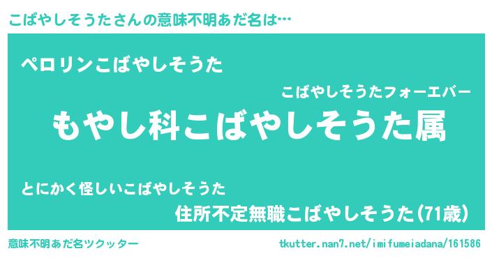 | 肩書あだ名 | 『こばやしそうた大佐』 |